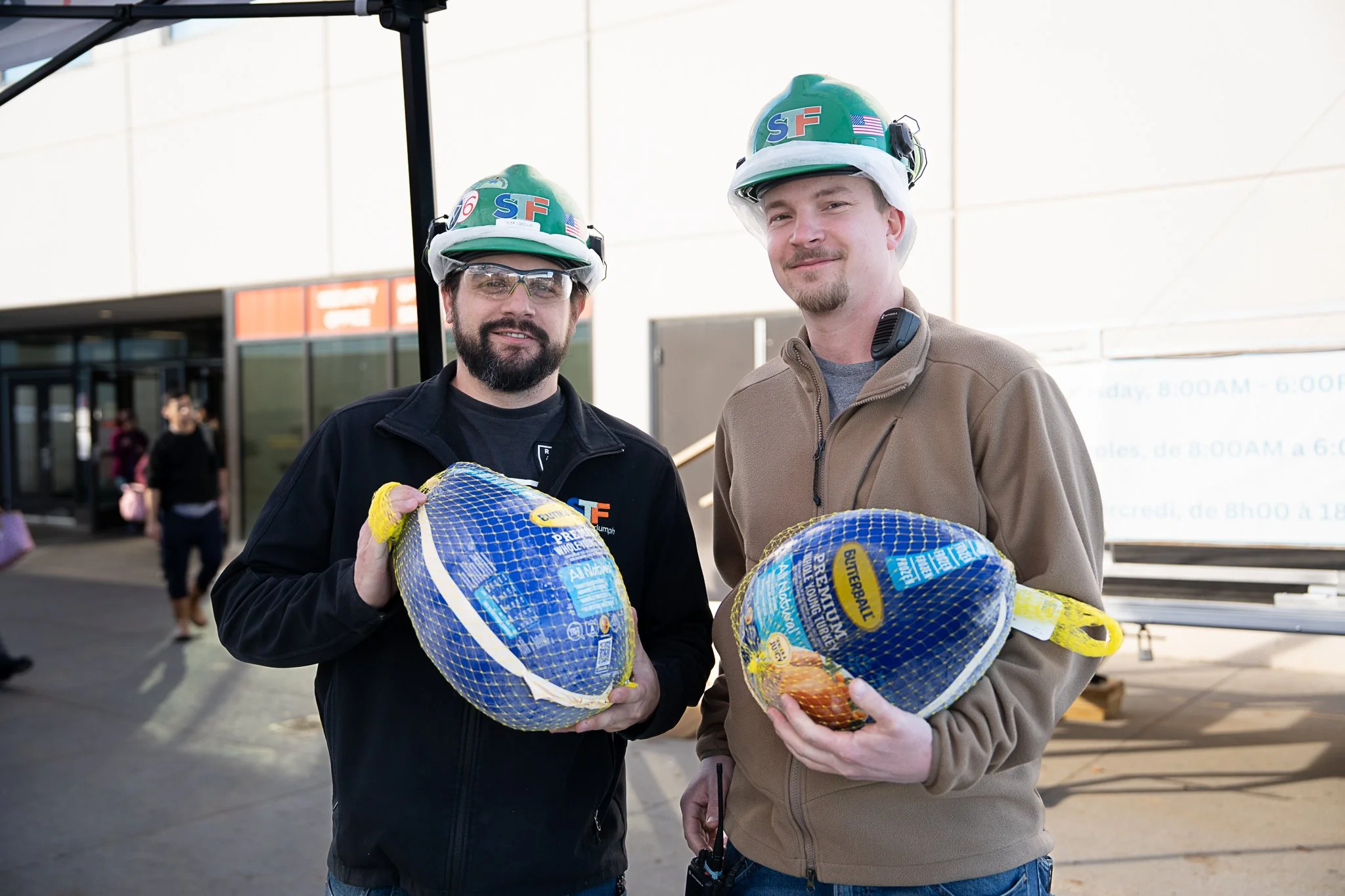 This year’s annual Holiday Meat Distribution brought a fun and meaningful change to an STF tradition. For the past two years, employees received pork loins for the holidays. This season, we switched things up and handed out turkeys—bringing a fresh burst of excitement to the event.